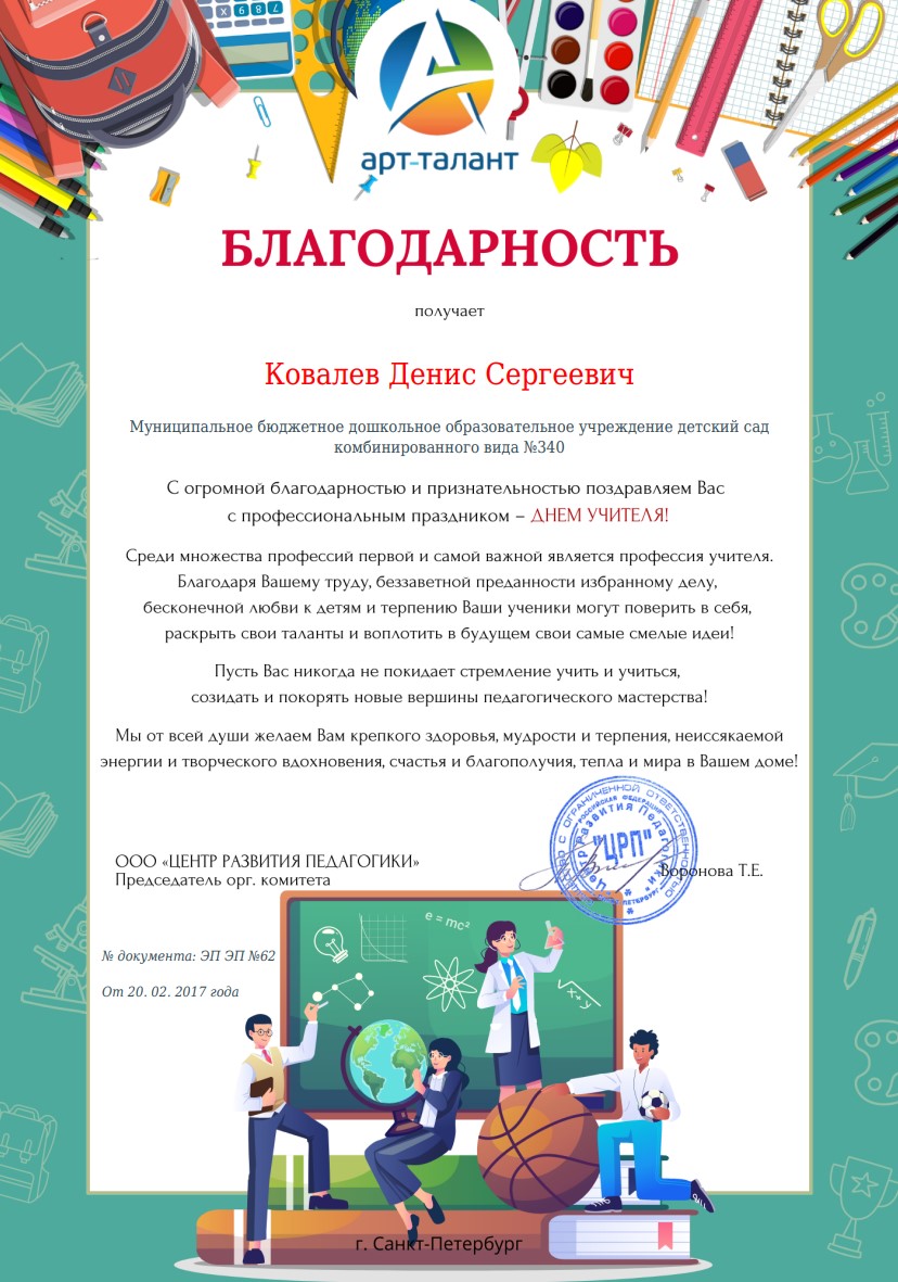 Благодарность оформлена для каждого педагога, зарегистрированного на нашем сайте. Для получения благодарности необходимо ОБЯЗАТЕЛЬНО полностью заполнить профиль в личном кабинете!