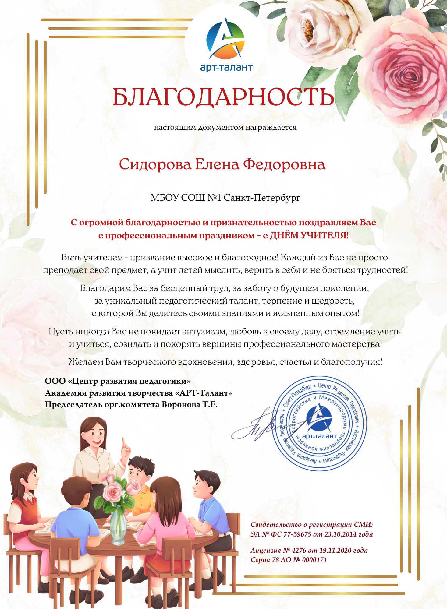В честь праздника мы приготовили для Вас подарок - БЛАГОДАРНОСТЬ к Дню Учителя.