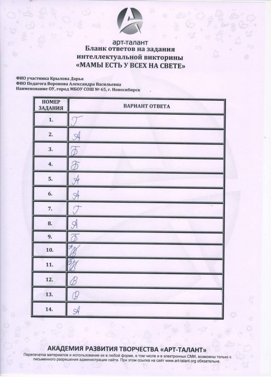 Крылова Дарья, МБОУ СОШ №65