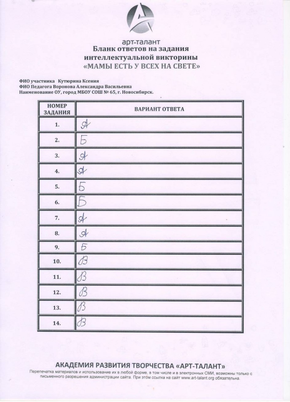Кутюрина Ксения, МБОУ СОШ №65