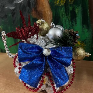 Работа выполнена из гипса, покрашена краской и украшена бусинами.