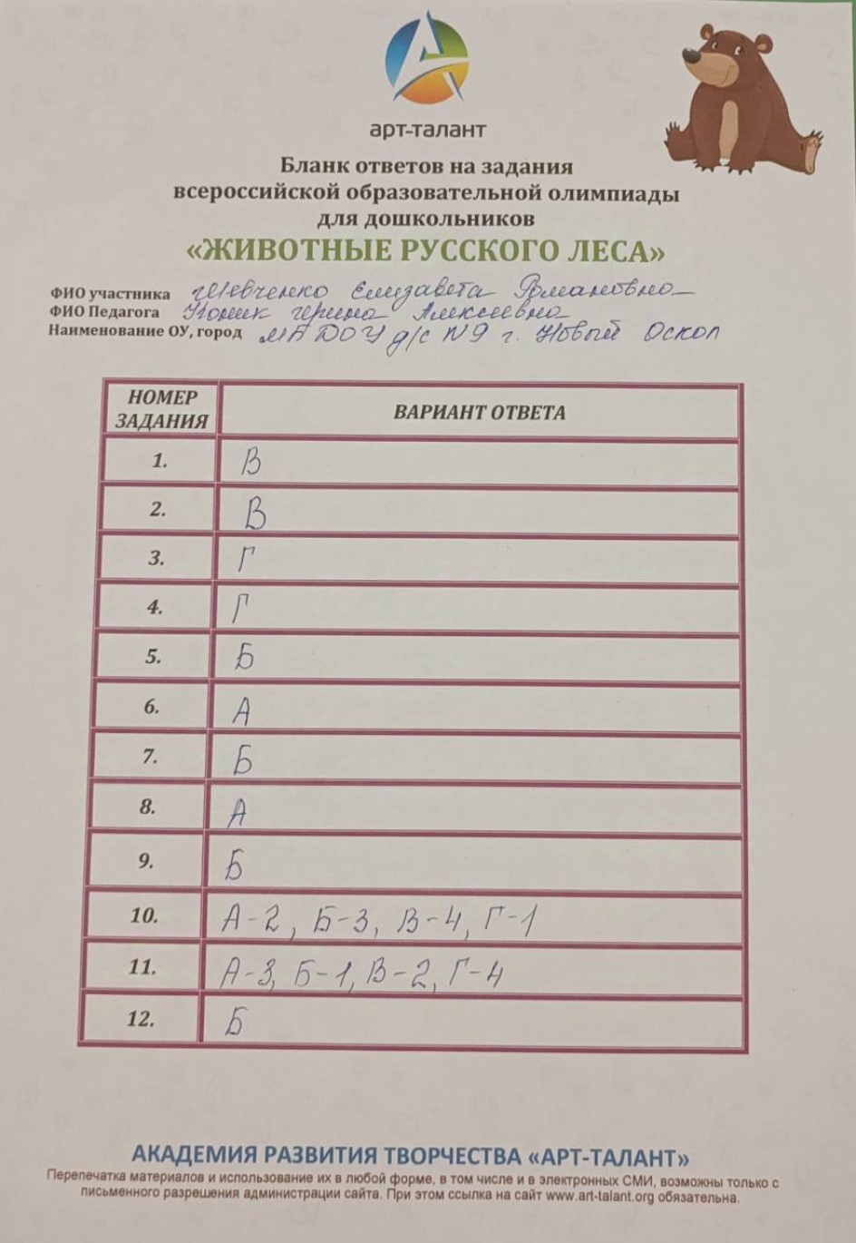 Шевченко Елизавета Романовна, МБДОУ Д.С. № 9