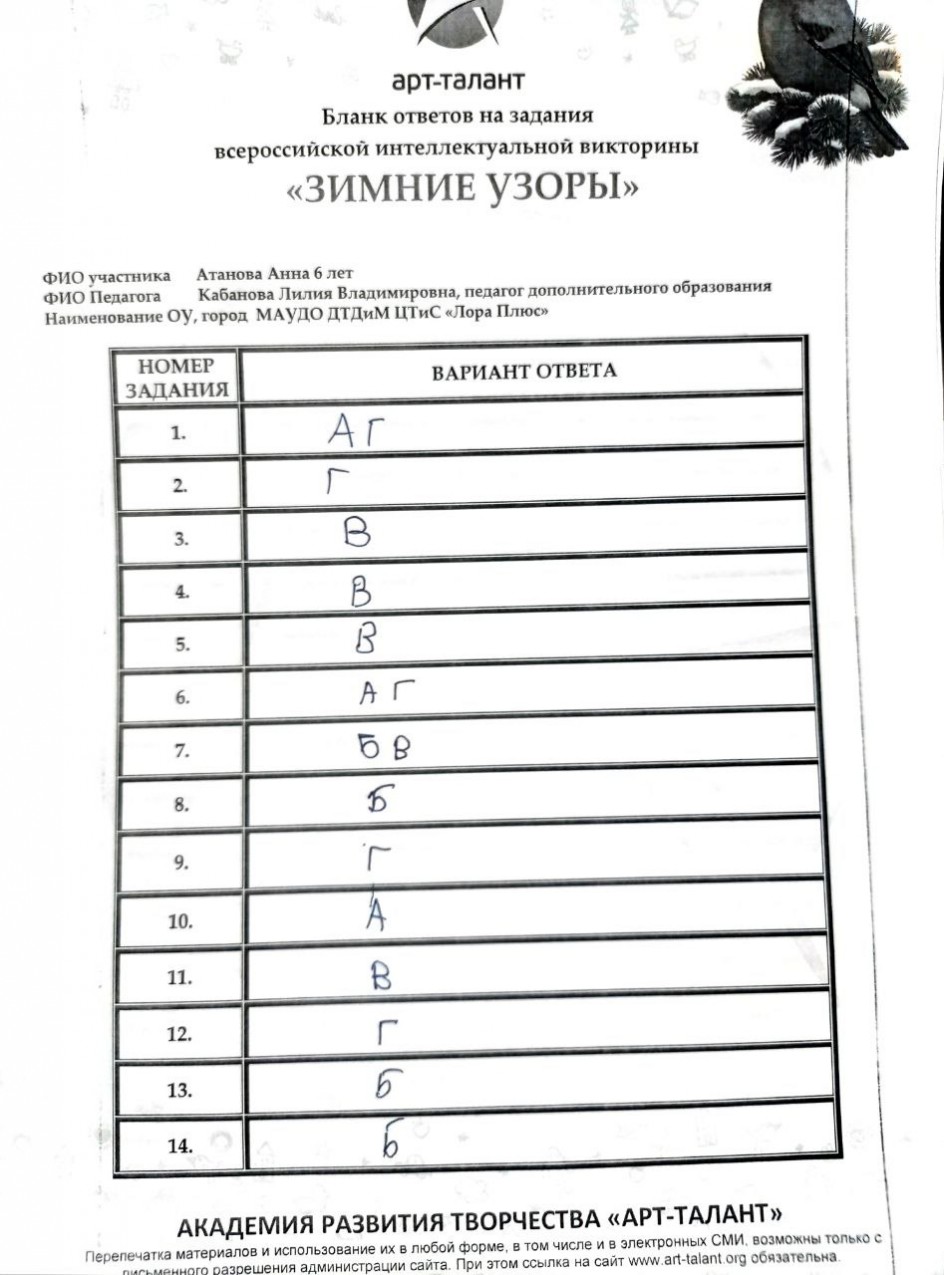 Атанова Анна 6 лет, ДТДиМ, ЦТиС "Лора Плюс"