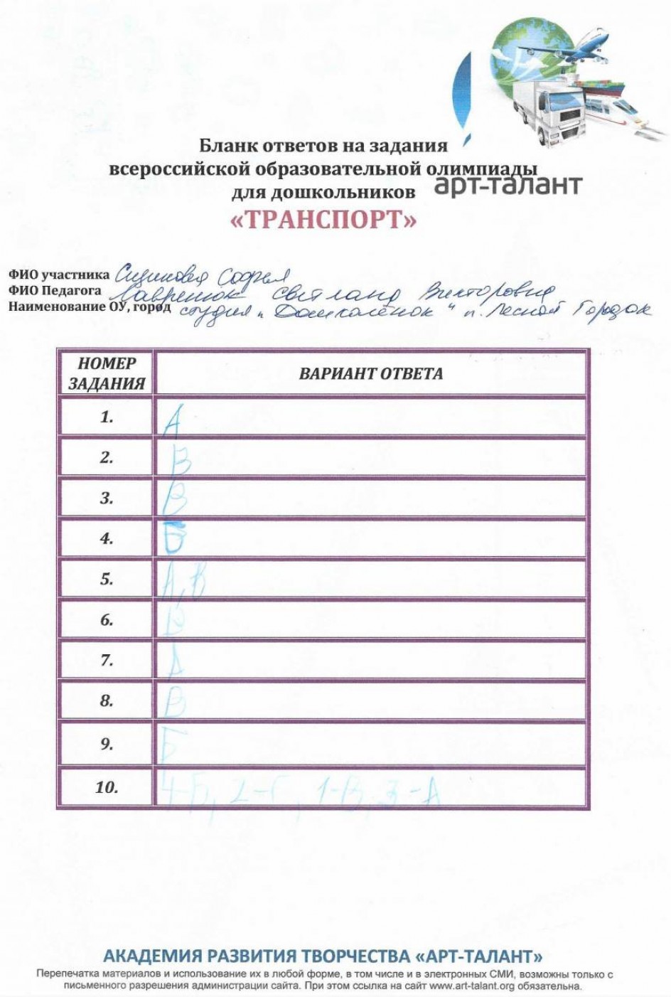Сизикова Софья, Студия "Дошколёнок" Лесной городок, ул.Молодёжная д.6