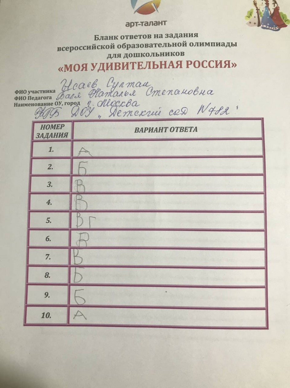 Ысаев Султан, ФГБ ДОУ "Детский сад №782" г.Москва