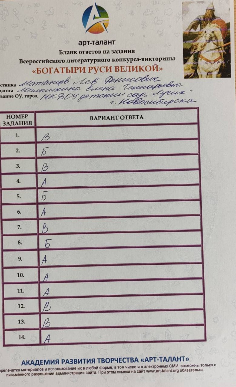 Матанцев Лев Денисович, Муниципальное казённое дошкольное образовательное учреждение Новосибирсконо района Новосибирской области - детский сад комбинированного вида "Лучик"