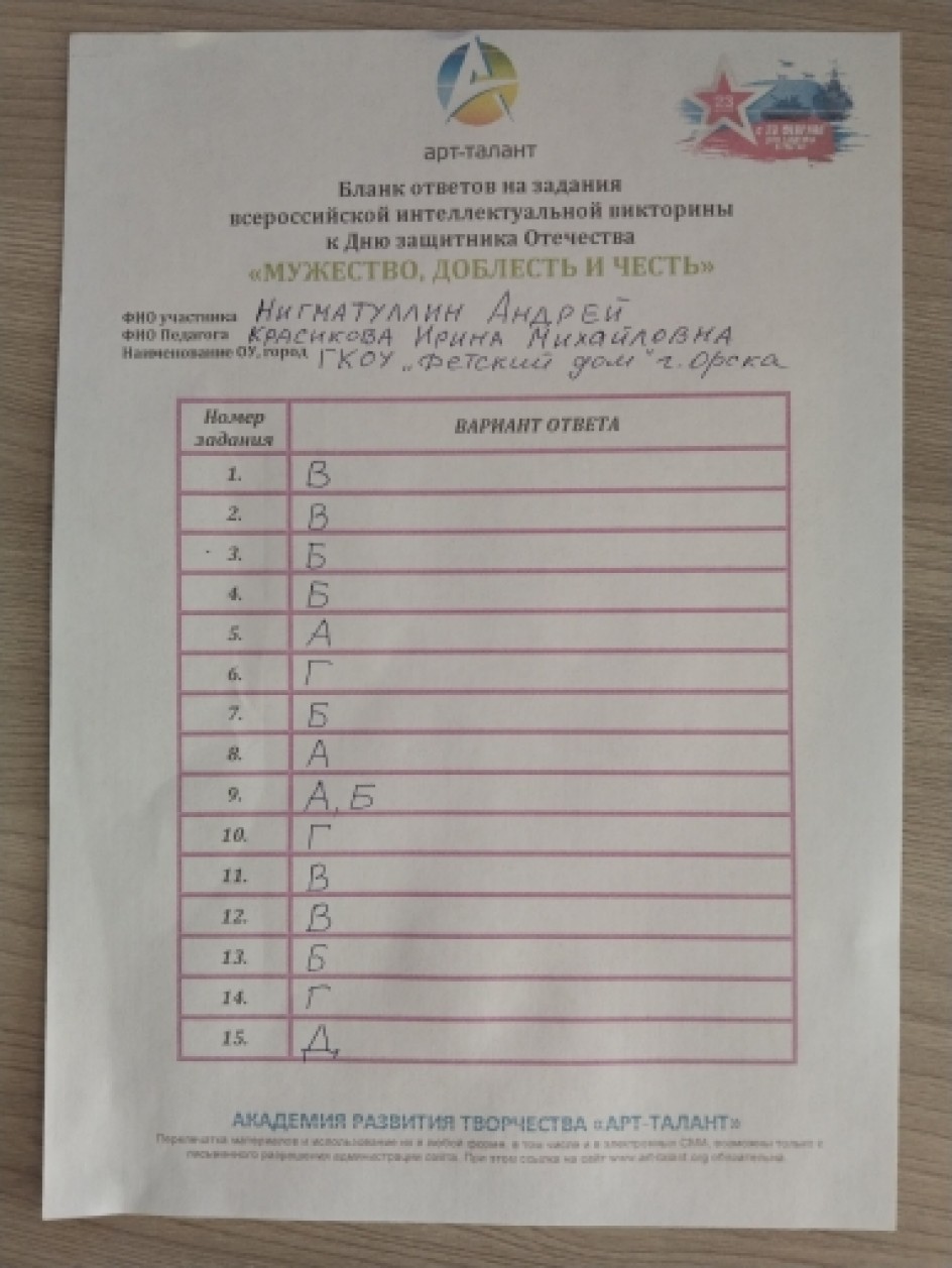 Нигматуллин Андрей, ГКОУ "Детский дом" г.Орска Оренбургской области