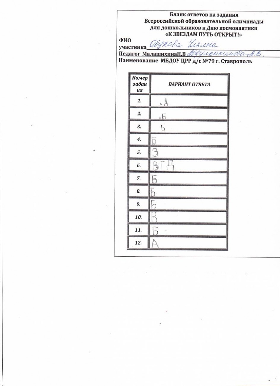 Обухова Ульяна, МБДОУ ЦРР д/с №79