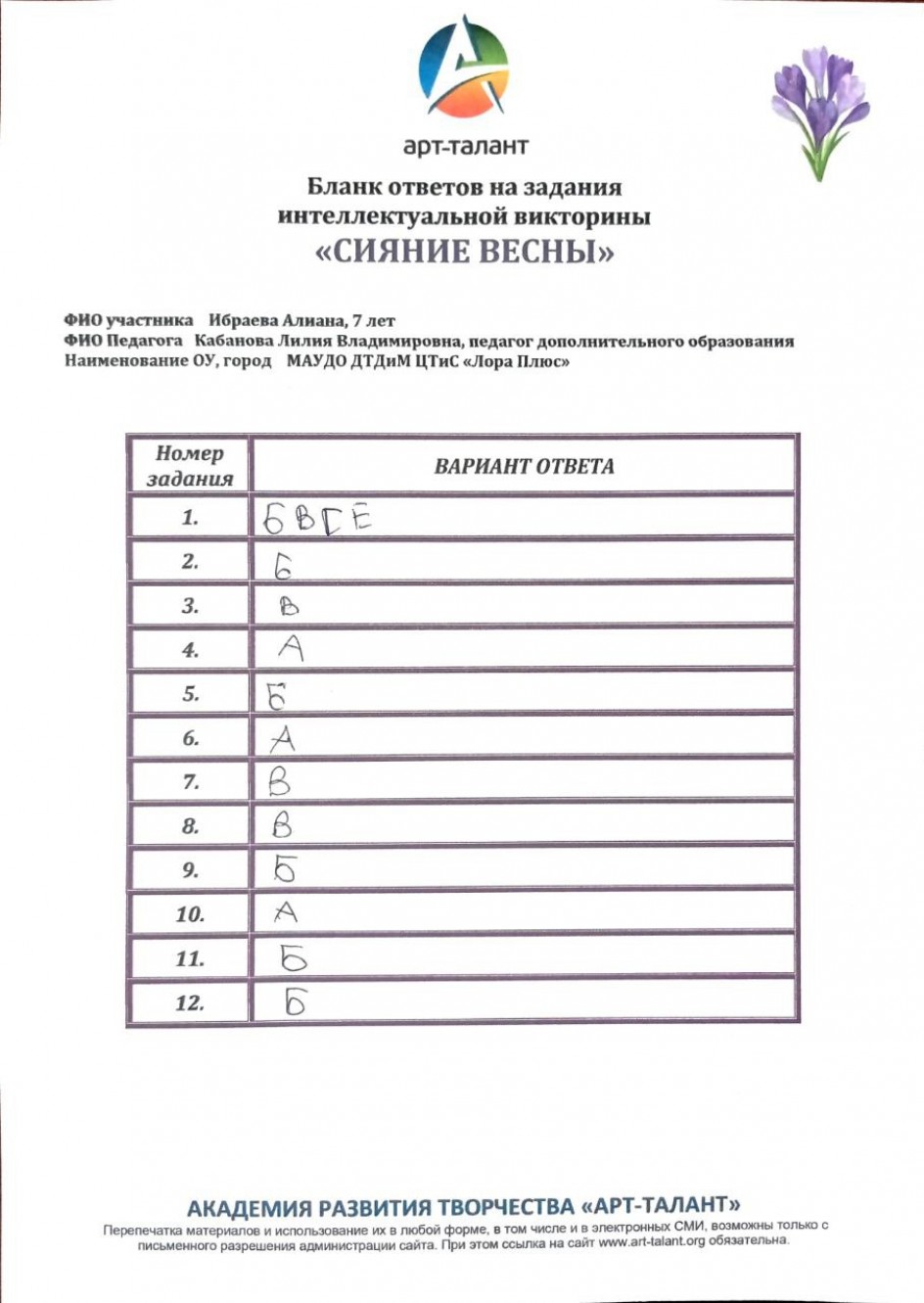 Ибраева Алиана 6 лет, ДТДиМ, ЦТиС "Лора Плюс"