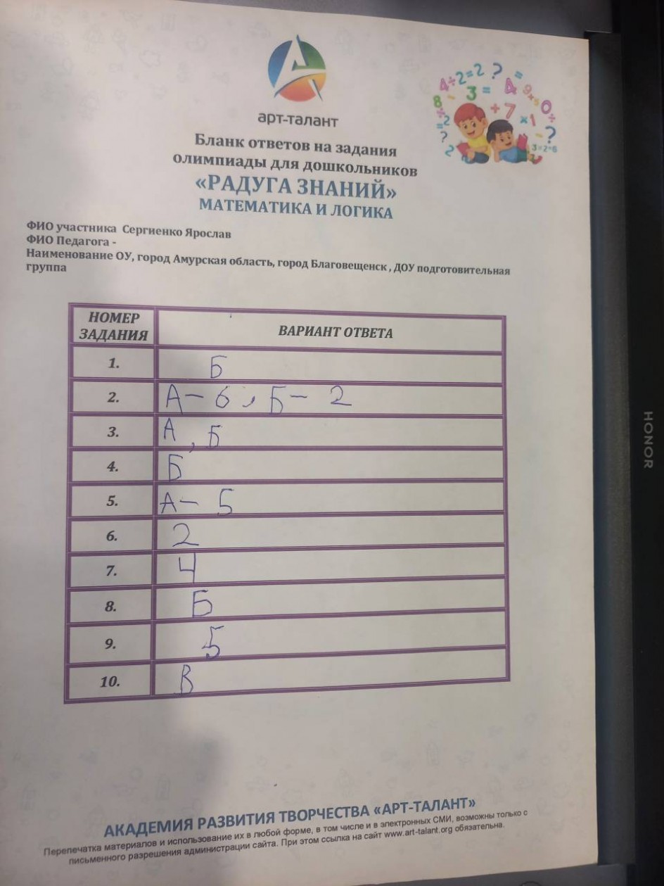 Сергиенко Ярослав, ДОУ г.Благовещенска, подготовительная группа