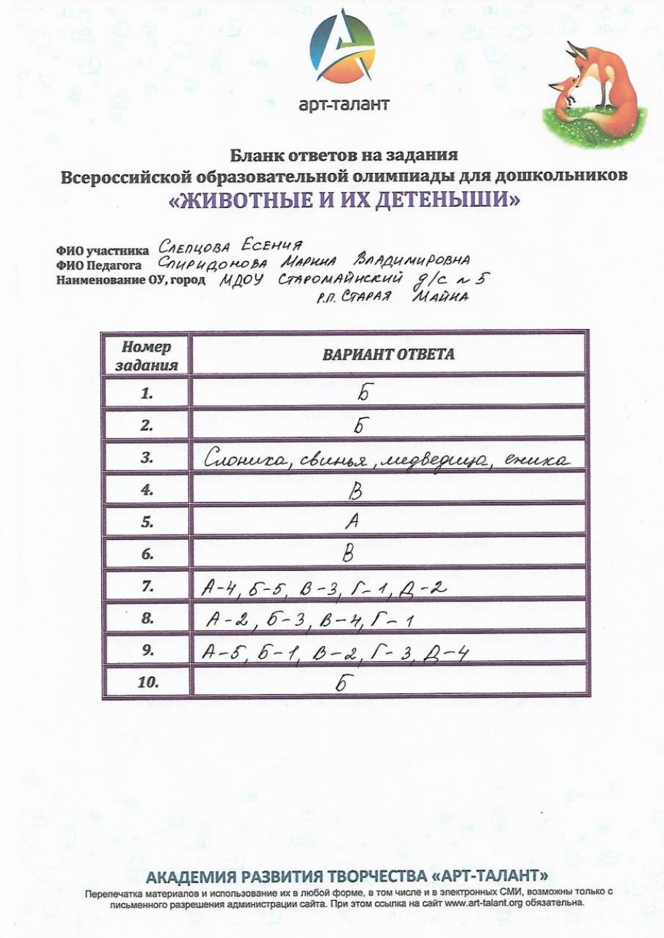 Слепцова Есения, МДОУ Старомайнский детский сад №5