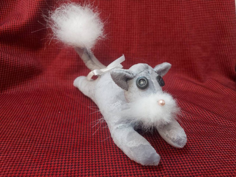 сшитая игрушка, с использованием мебельной ткани , синтепона меха , пуговиц и бусны, атласной ленточки