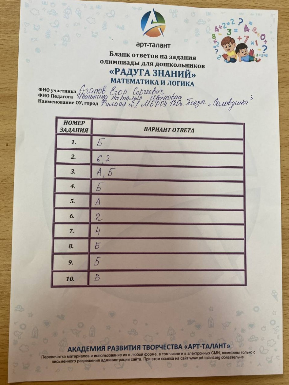 Агапов Егор Сергеевич, Филиал 1 МБДОУ 120 г. Пензы «Соловушка «