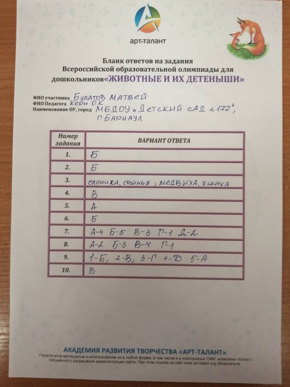 Булатов Матвей, Муниципальное бюджетное дошкольное образовательное учреждение "Детский сад № 172"
