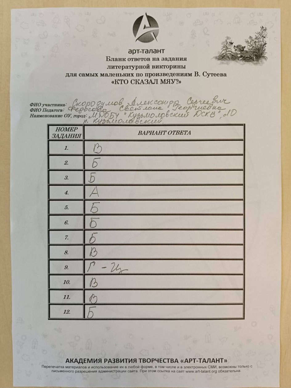 Скородумов Александр, МДОБУ "Кузьмоловский ДСКВ"