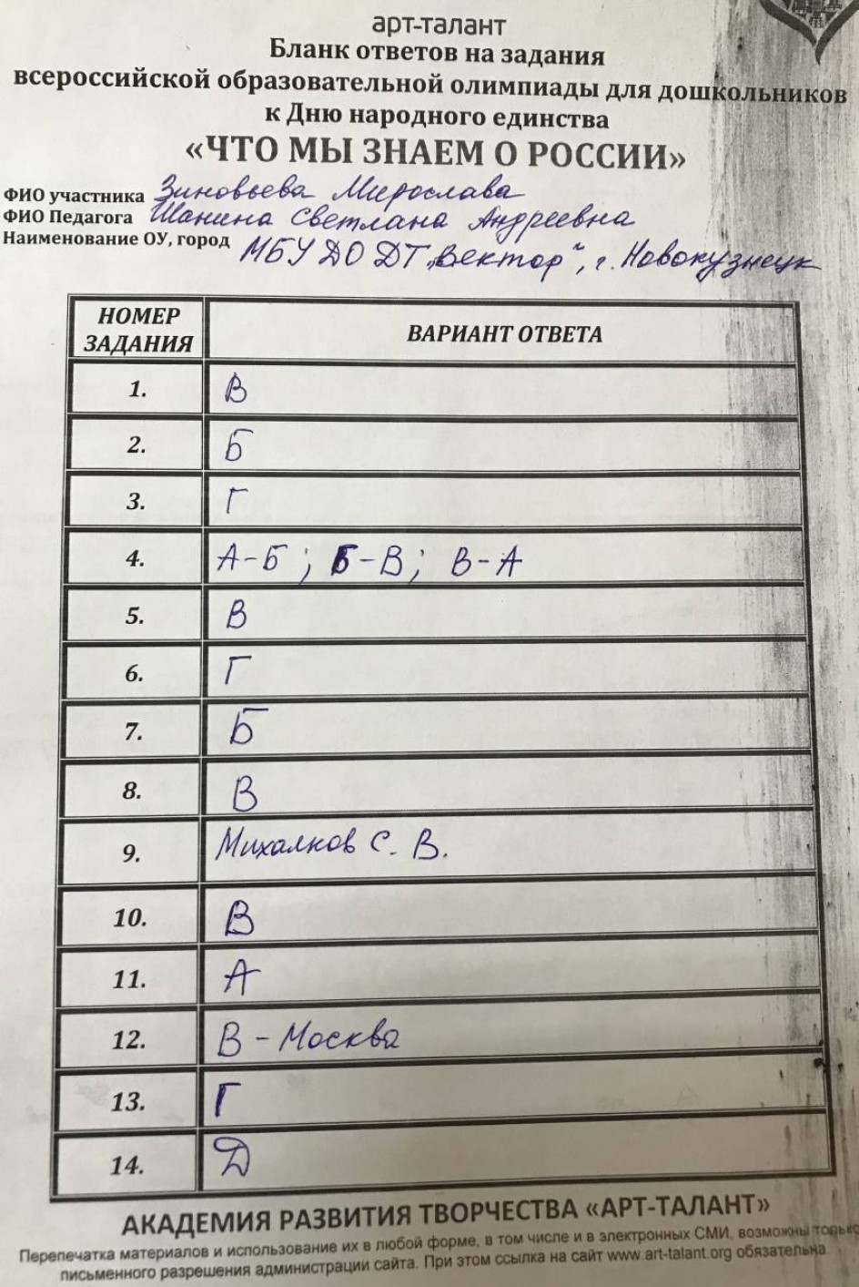 Зиновьева Мирослава, МБУ ДО ДТ «Вектор», г. Новокузнецк