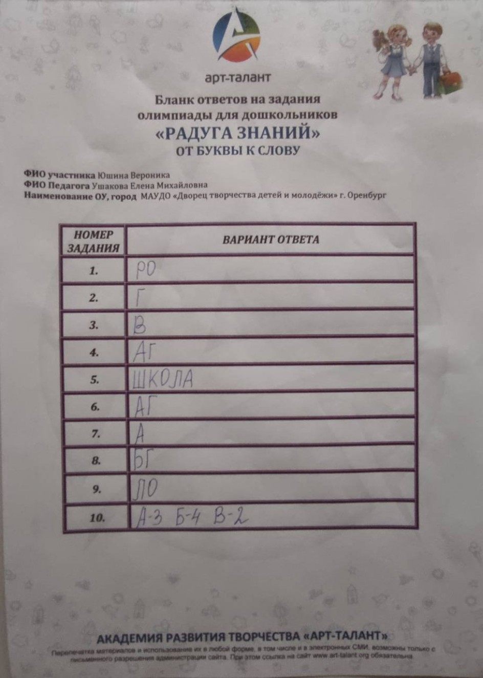 Юшина Вероника, МАУДО "Дворец творчества детей и молодëжи" г. Оренбург