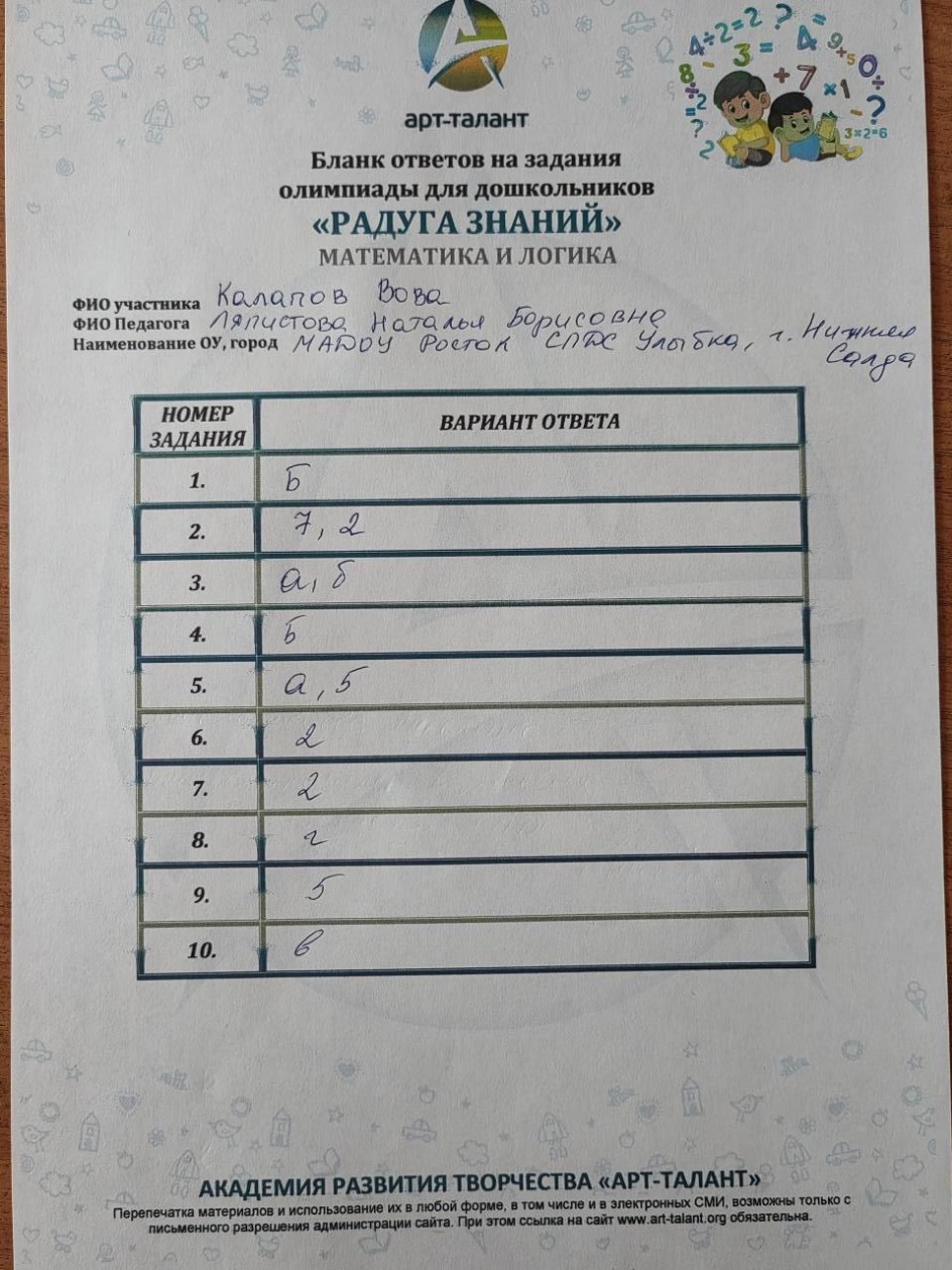 Калапов Вова, МАДОУ Росток СПДС Улыбка, г. Нижняя Салда
