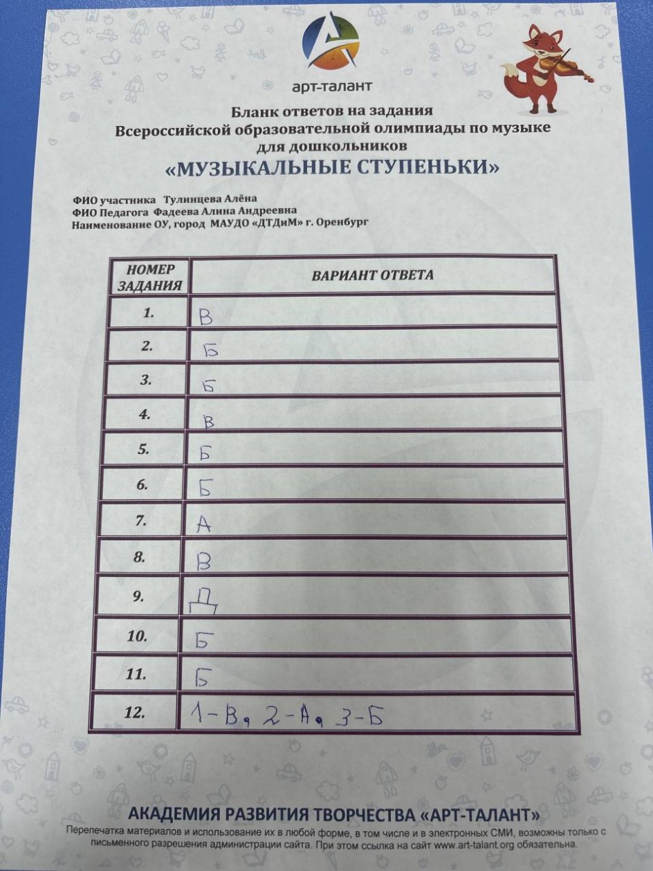 Тулинцева Алёна, МАУДО «ДТДиМ» г. Оренбург