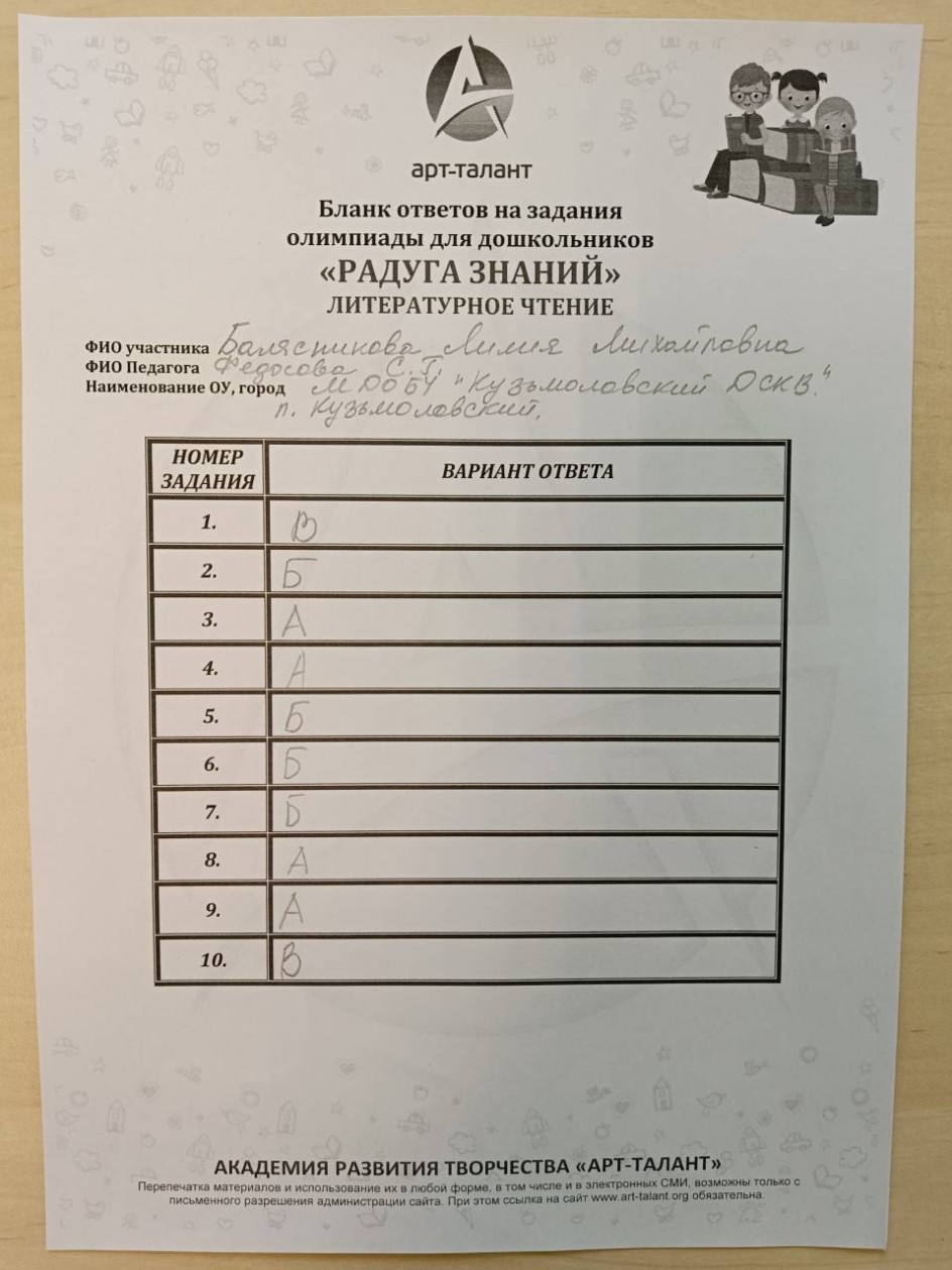 Балясникова Лилия Михайловна, МДОБУ "Кузьмоловский ДСКВ"