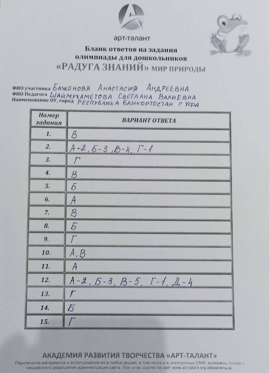Баженова Анастасия Андреевна, ЧДС "Медвежонок"