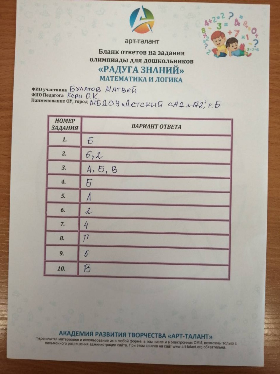 Булатом Матвей, Муниципальное бюджетное дошкольное образовательное учреждение "Детский сад № 172"