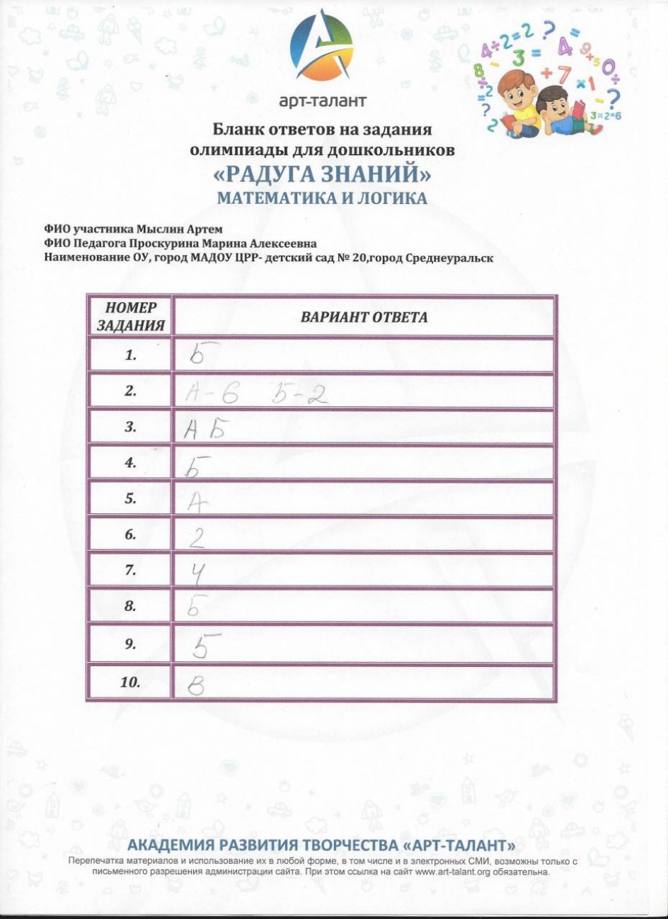 Мыслин Артем, МАДОУ ЦРР-детский сад№ 20, город Среднеуральск