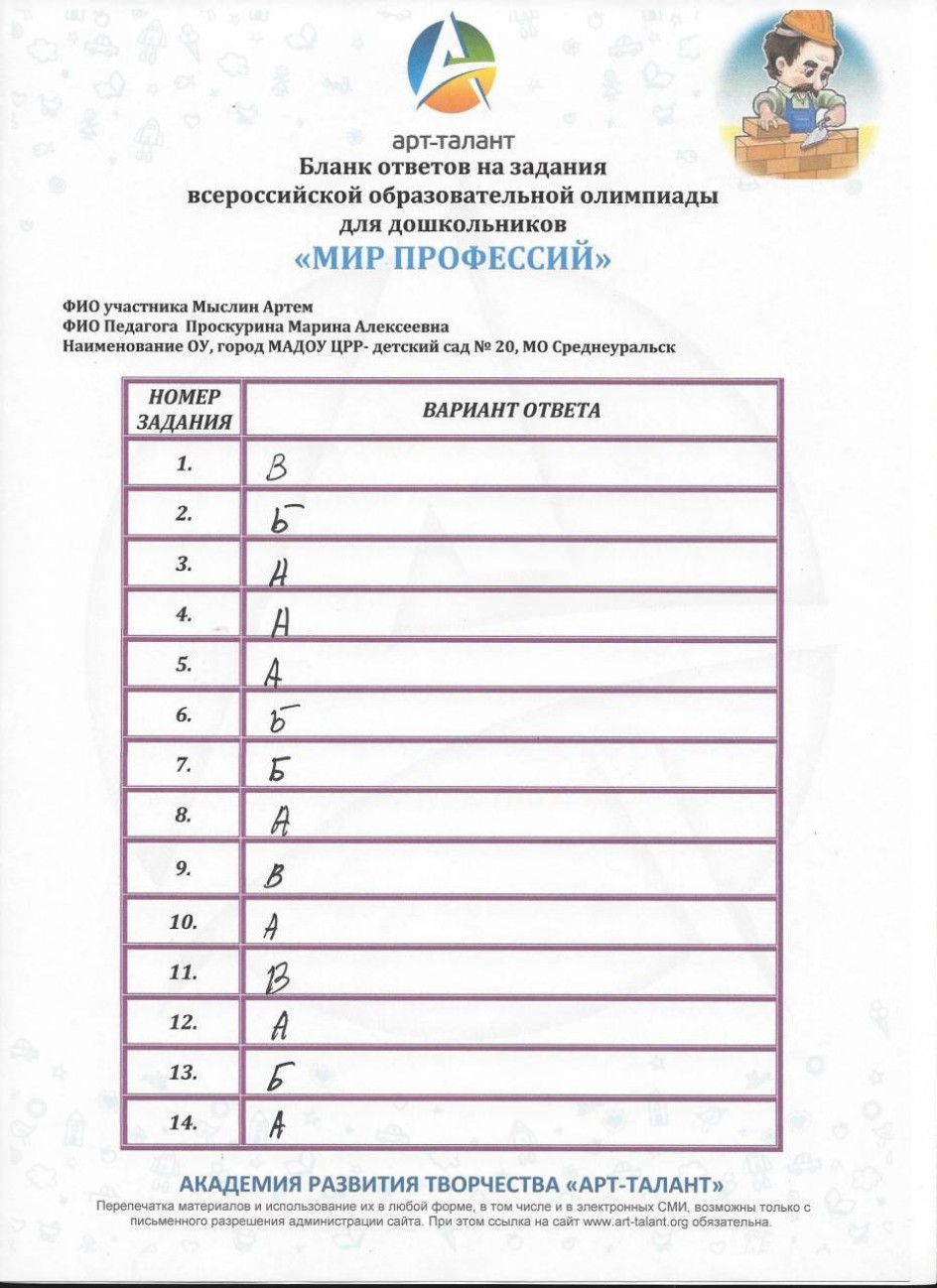 Мыслин Артем, МАДОУ ЦРР-детский сад№ 20, МО Среднеуральск
