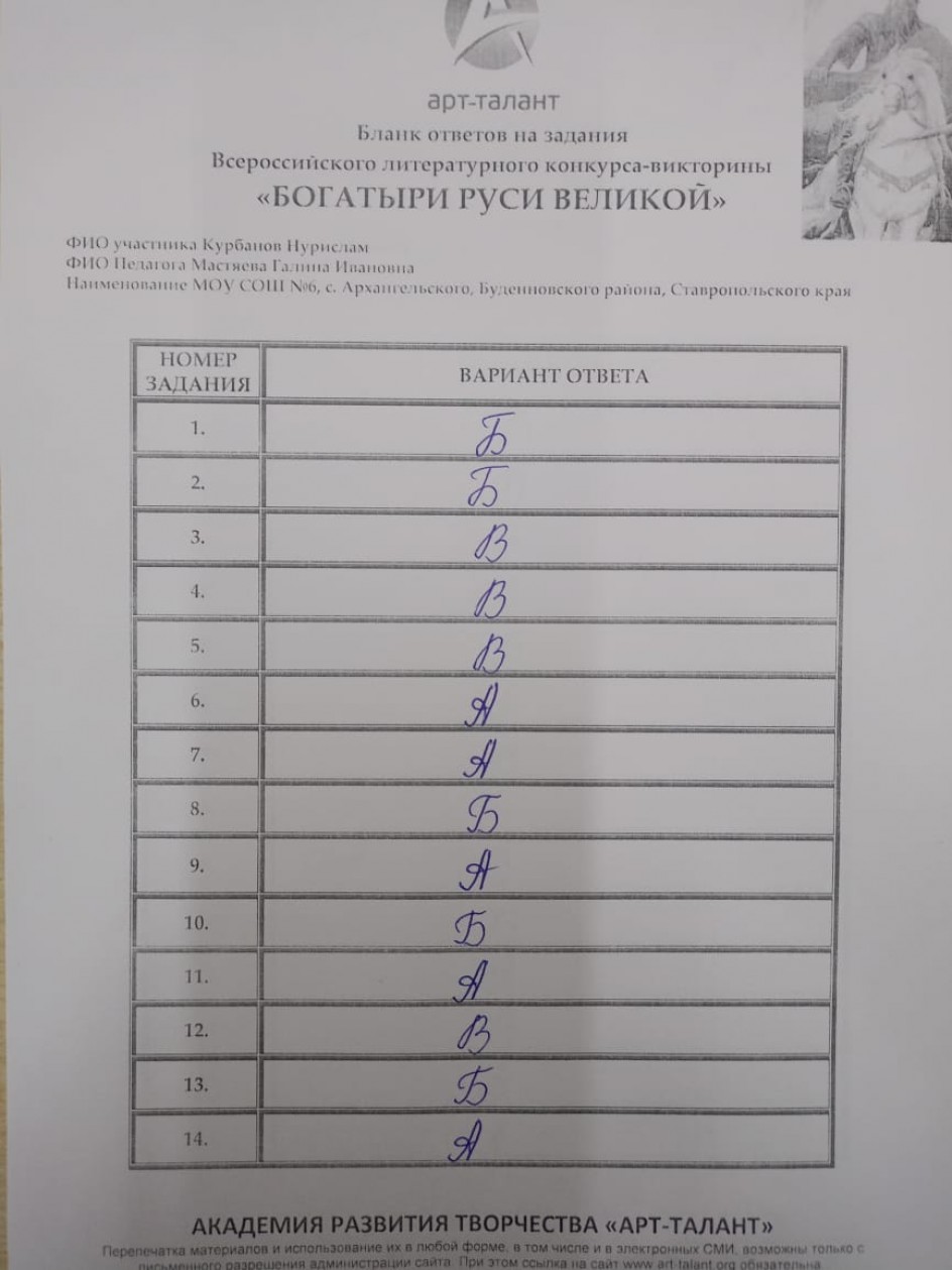 Курбанов Нурислам, МОУ СОШ №6 с. Архангельского