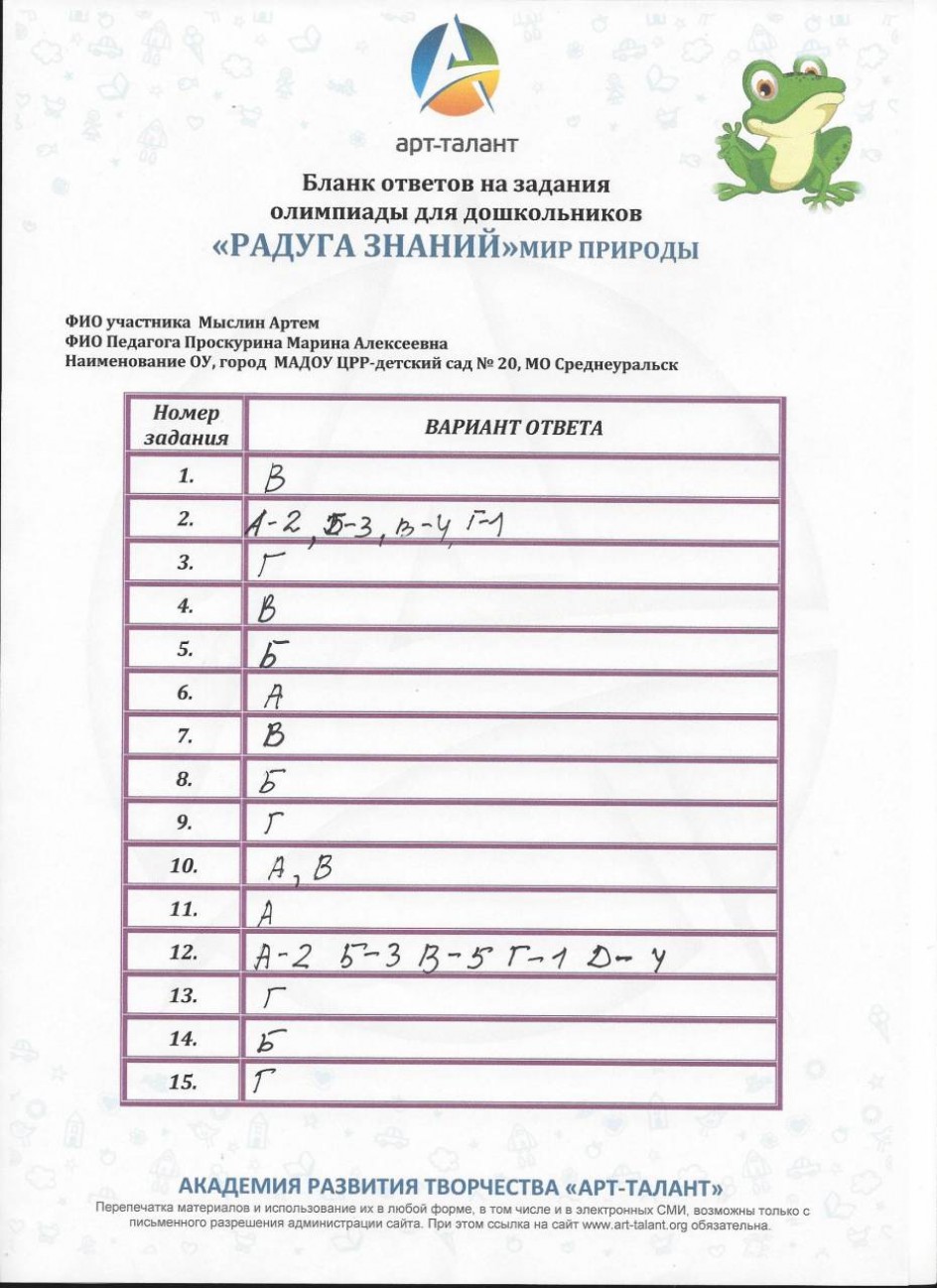 Мыслин Артем, МАДОУ ЦРР-детский сад№ 20 МО Среднеуральск