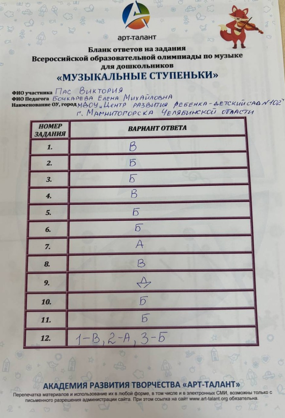 Пас Виктория, МДОУ "Центр развития ребёнка - детский сад № 102"