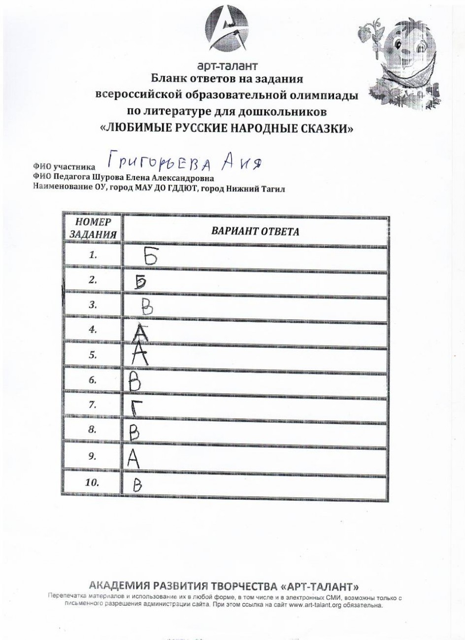 Григорьева Анна, МАУ ДО ГДДЮТ
