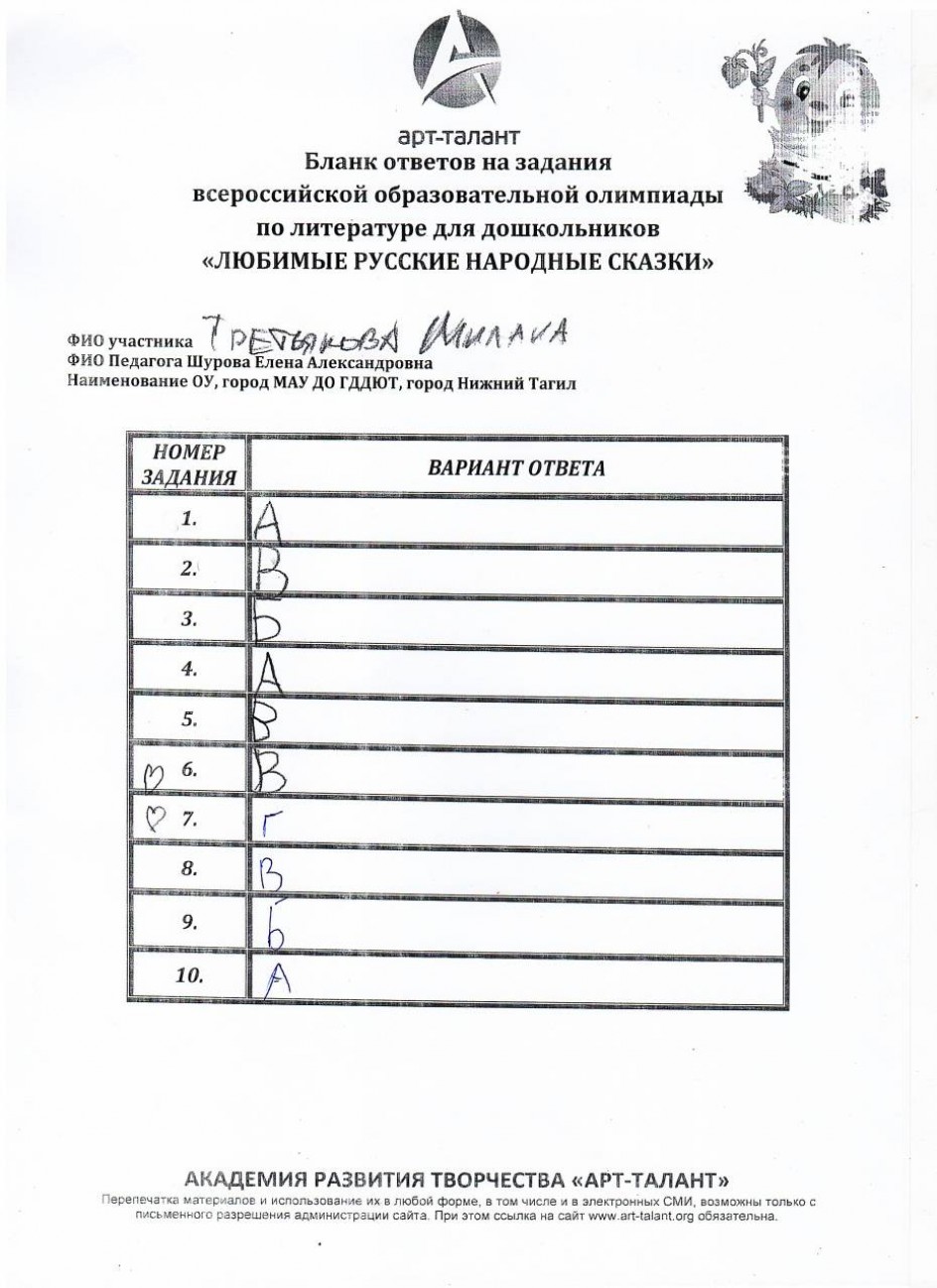 Третьякова Милана, МАУ ДО ГДДЮТ