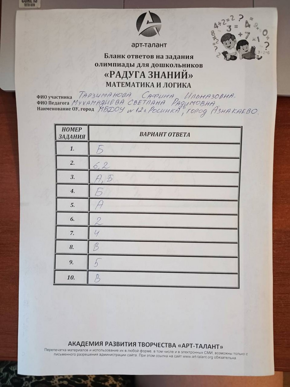Тарзиманова Сафина Ильназовна, МБДОУ №12 " Росинка" г.Азнакаево РТ