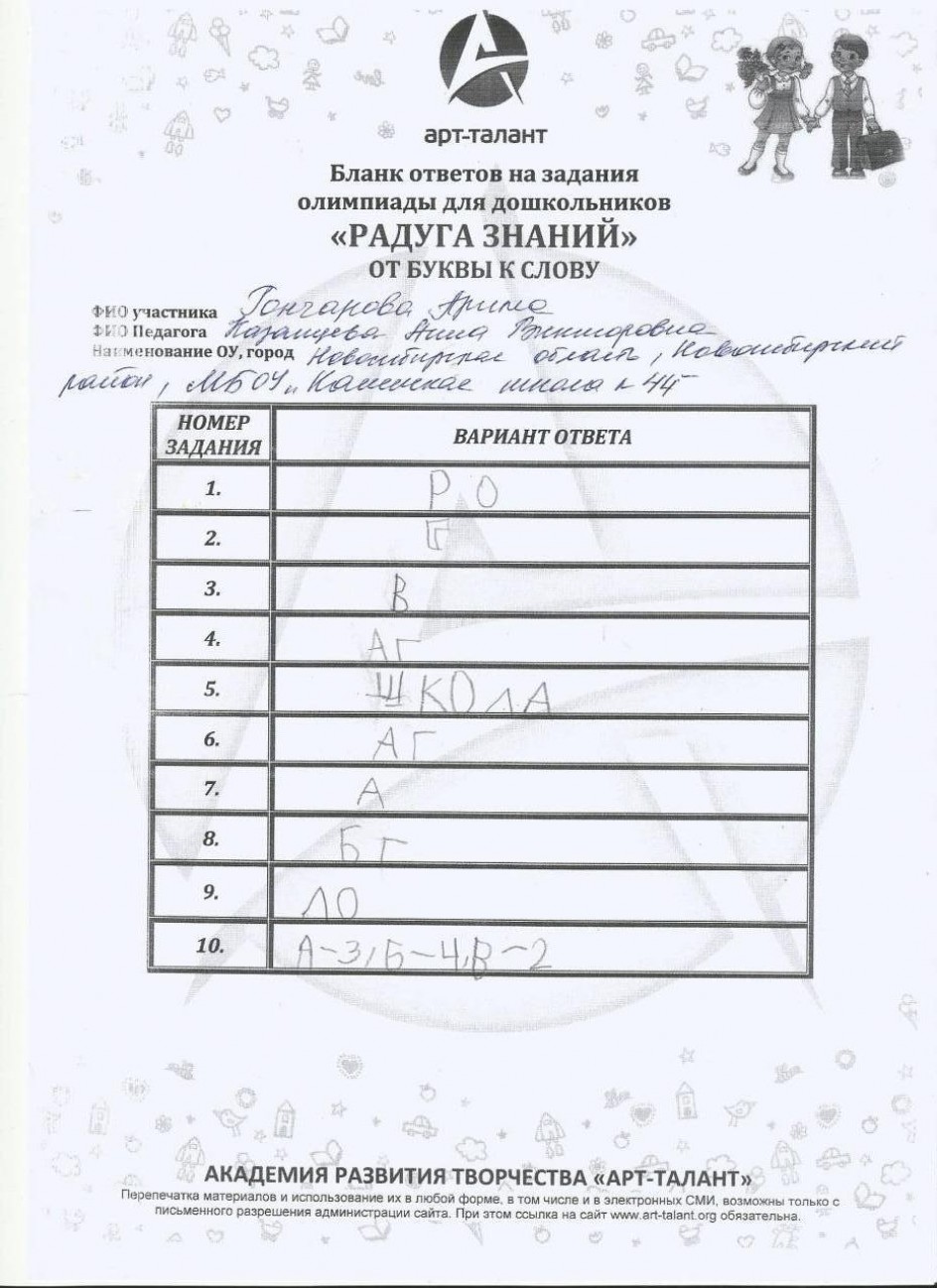 Гончарова Арина Андреевна, муниципальное бюджетное образовательное учреждение "Каменская средняя школа № 44"