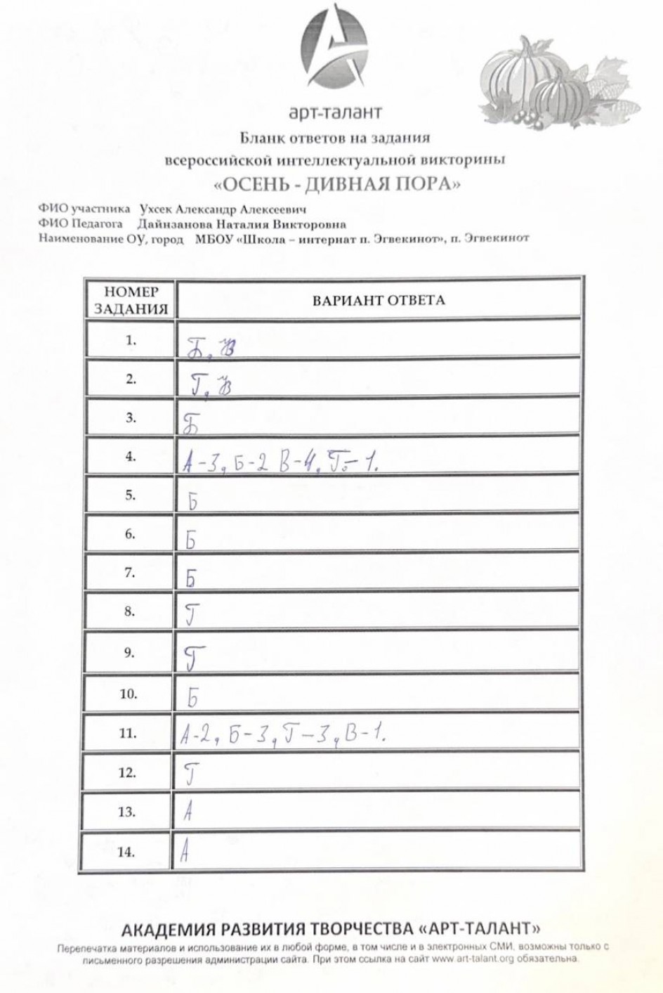 Ухсек Александр Алексеевич, МБОУ «Школа-интернат поселка Эгвекинот»