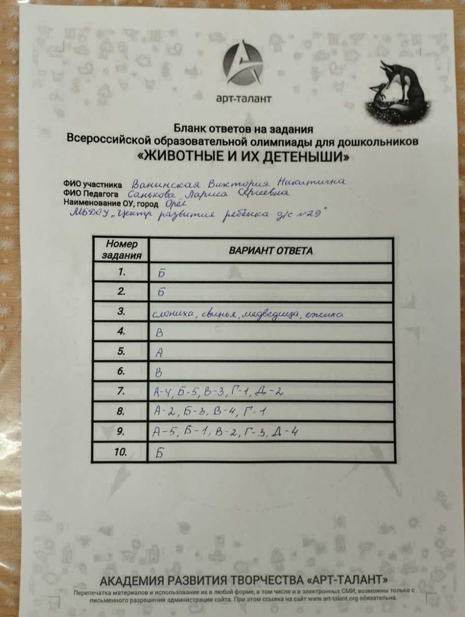 Ванинская Виктория Никитична, МБ ДОУ "Центр развития ребенка - детский сад 29" г. Орёл
