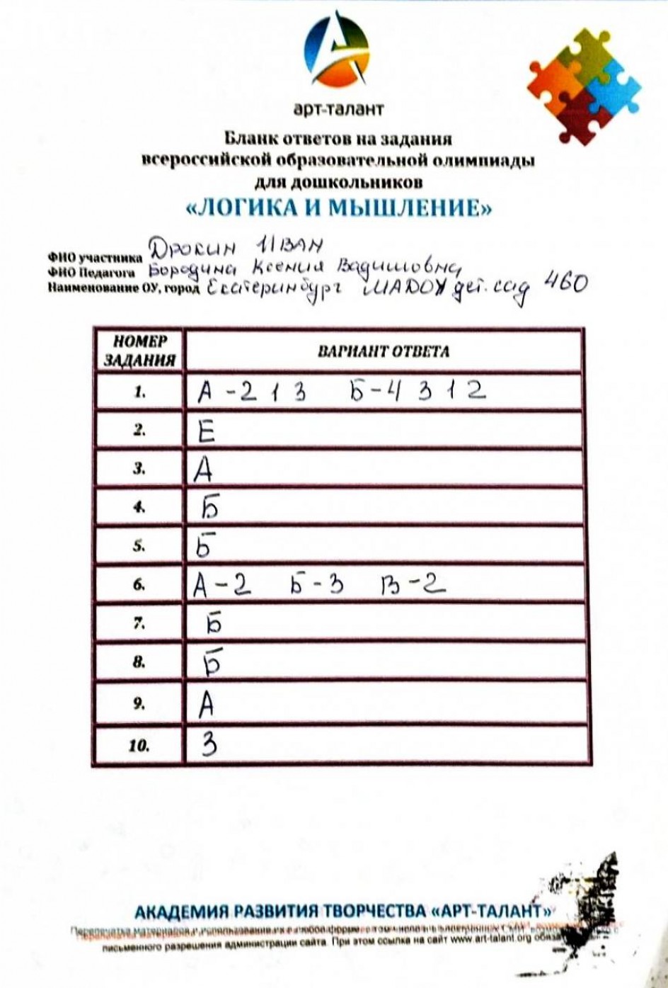 Дрокин Иван Андреевич, МАДОУ детский сад 460