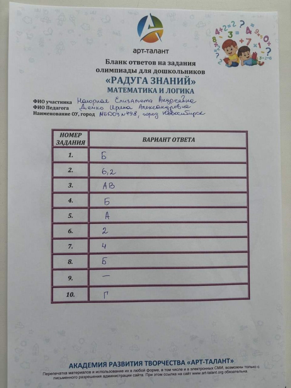 Нагорная Елизавета Андреевна, город Новосибирск, МБДОУ Детский сад №498