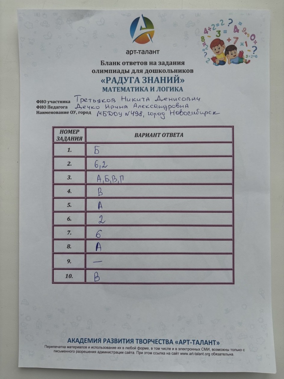 Третьяков Никита Денисович, город Новосибирск, МБДОУ Детский сад №498