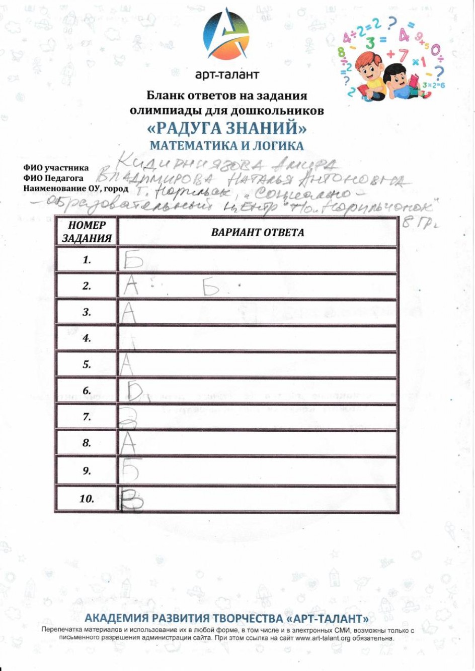 Кидирниязова Амира, "Социально-образовательный центр" г.Норильск, т/о "Норильчонок", 8 группа