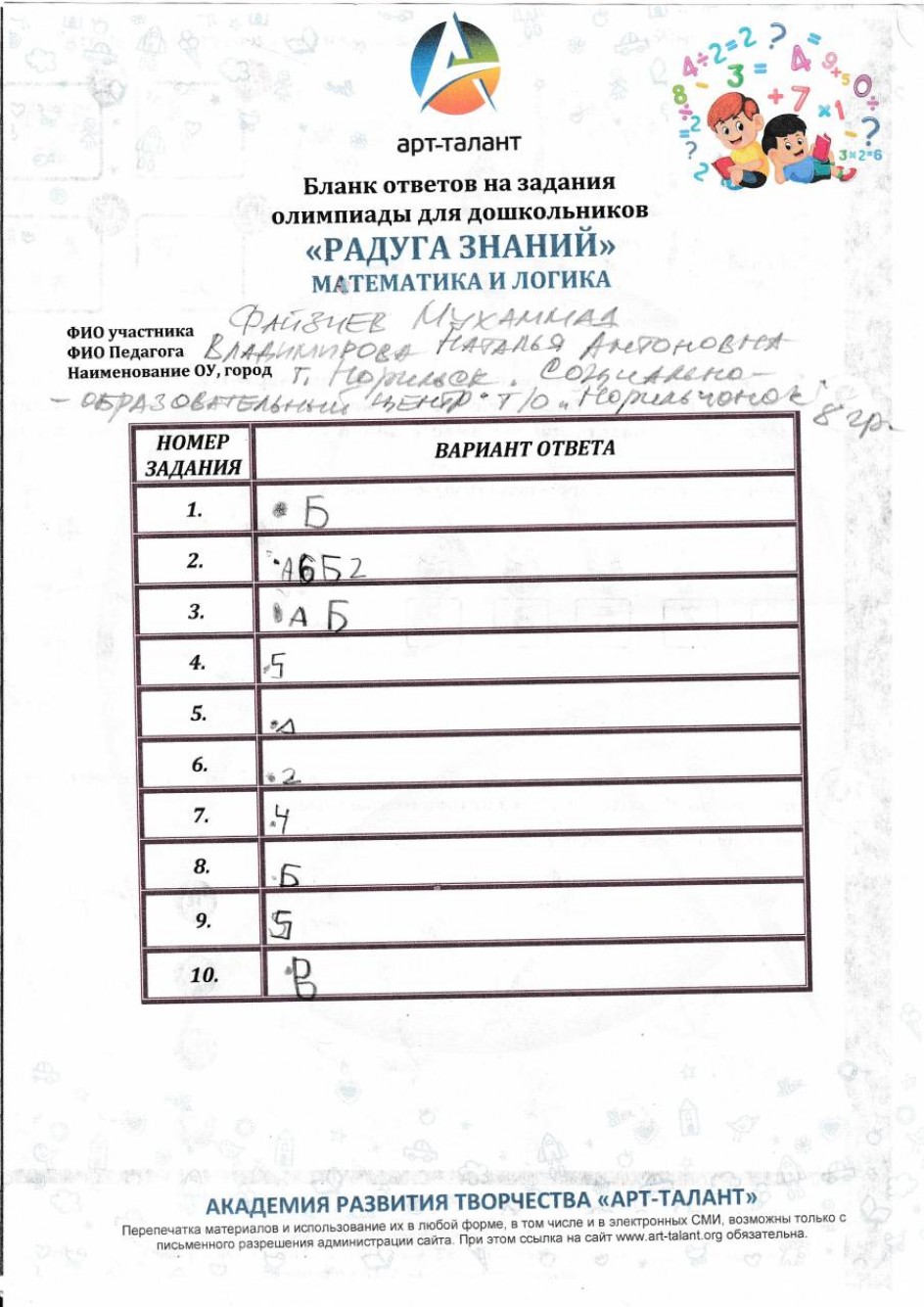 Файзиев Мухаммад, "Социально-образовательный центр" г.Норильск, т/о "Норильчонок", 8 группа