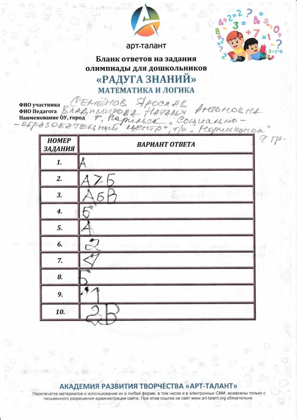 Семёнов Ярослав, "Социально-образовательный центр" г.Норильск, т/о "Норильчонок", 9 группа