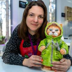 Работа выполнена скульптурным методом. Роспись глазурью. Автор вдохновлялась мультфильмами и новогодними иллюстрациями.