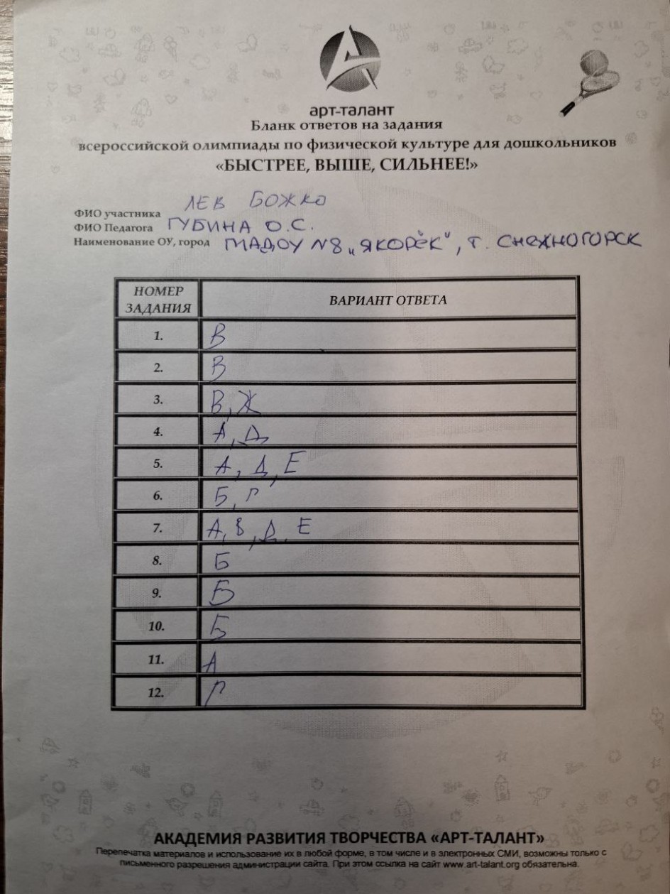 Божко Лев, МАДОУ №8 "Якорек", г. Снежногорск