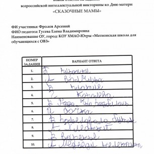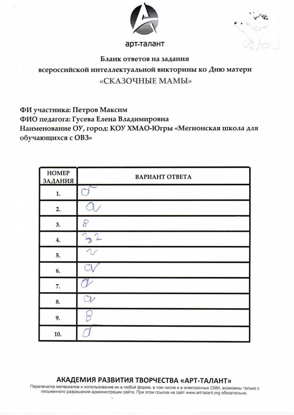 Петров Максим, КОУ "Мегионская школа для обучающихся с ОВЗ"