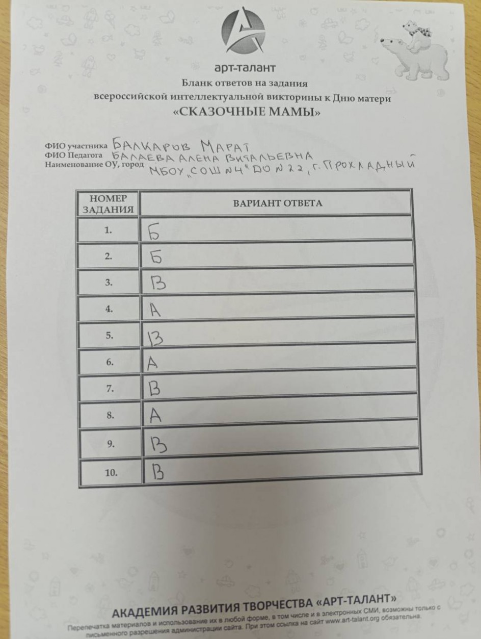 Балкаров Марат, МБОУ СОШ 4, ДО 22