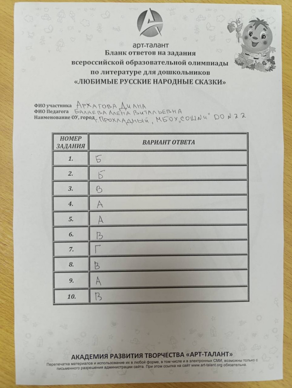 Архагова Диана, МБОУ СОШ 4, ДО 22