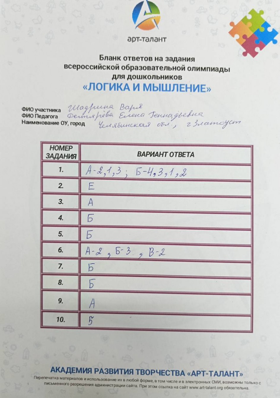 Шадрина Варя, МАДОУ " ЦРР- детский сад №43"