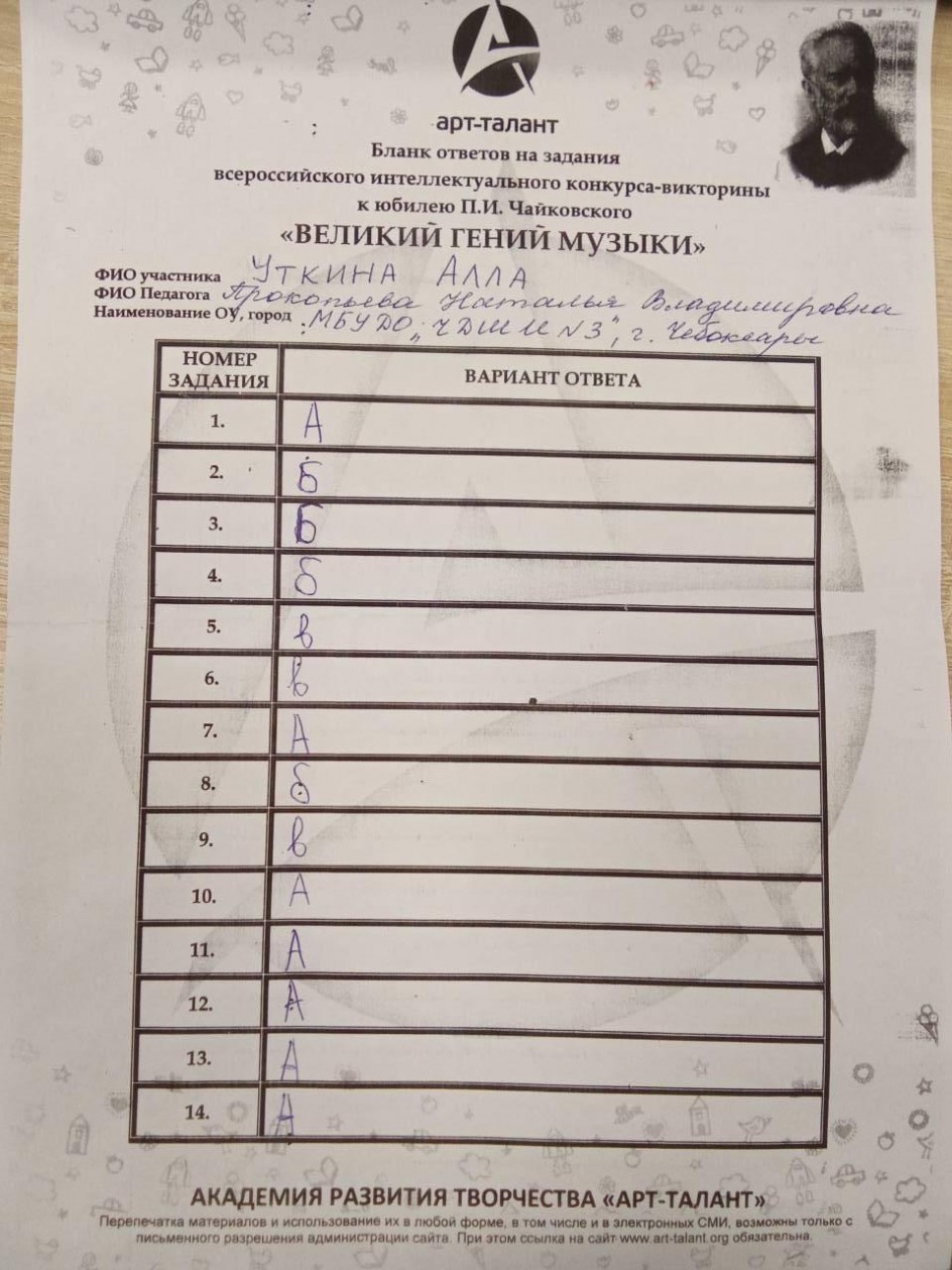 Уткина Алла, МБУ ДО "Чебоксарская детская школа искусств"